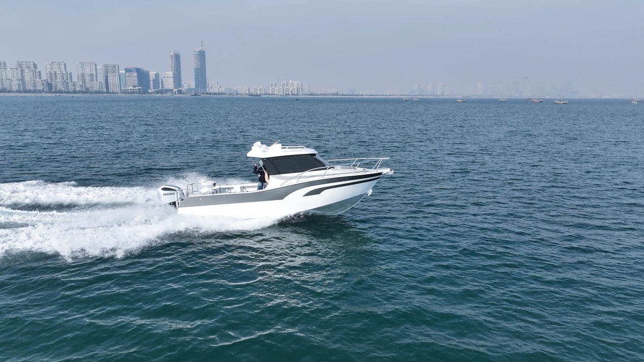动力配置强劲高效,适配200HP 主机,航行性能出色,航速可达34kn,可快速抵达目标垂钓区域,节省出行时间。同时,船艇支持8人定员,符合安全标准,适合与亲友结伴出行,共享垂钓乐趣。