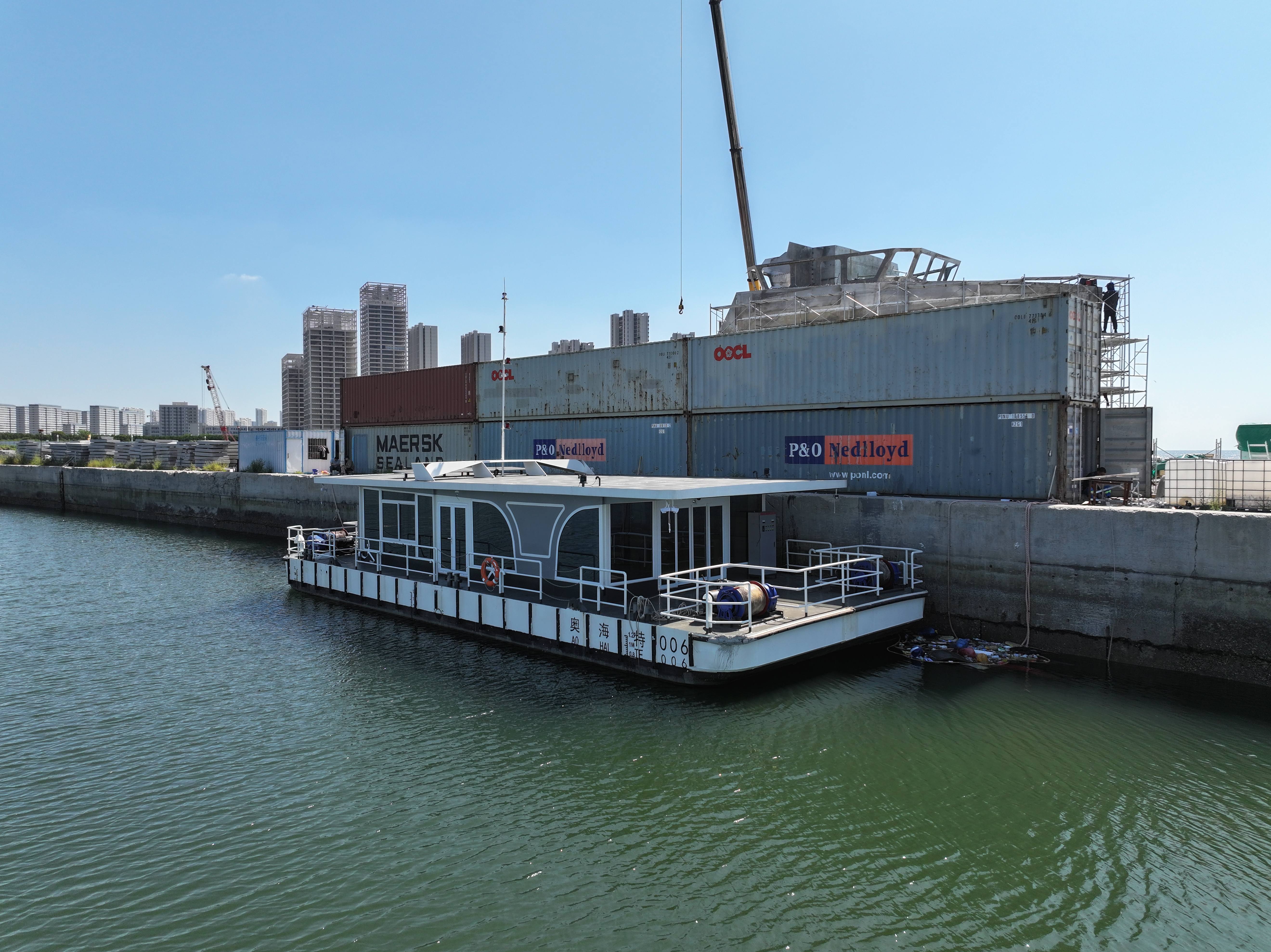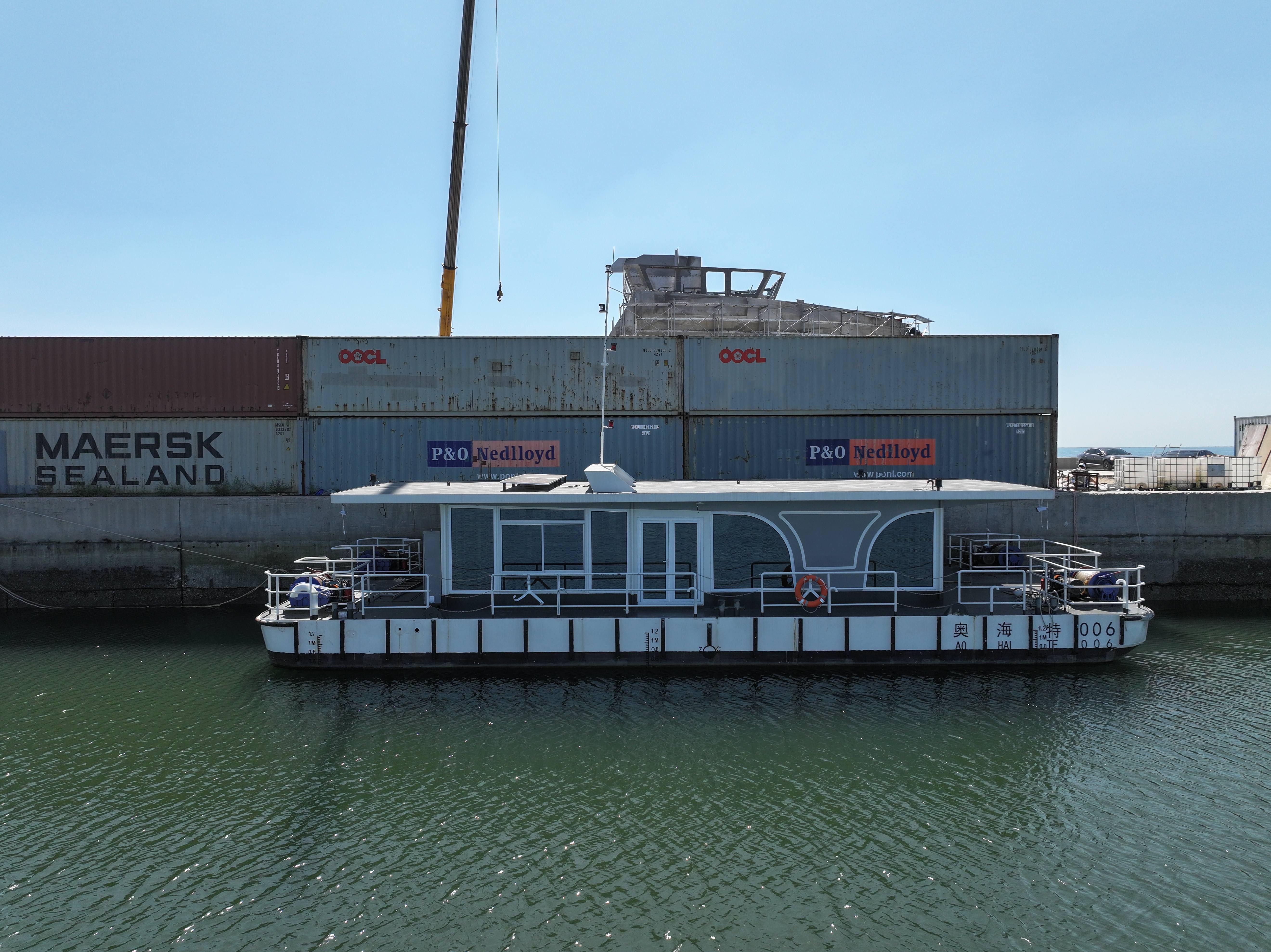 无动力装置的矩形平底非自航船,通常固定在岸边,作为船舶停靠的“浮码头”,以供船舶停靠,上下旅客,装卸货物。
